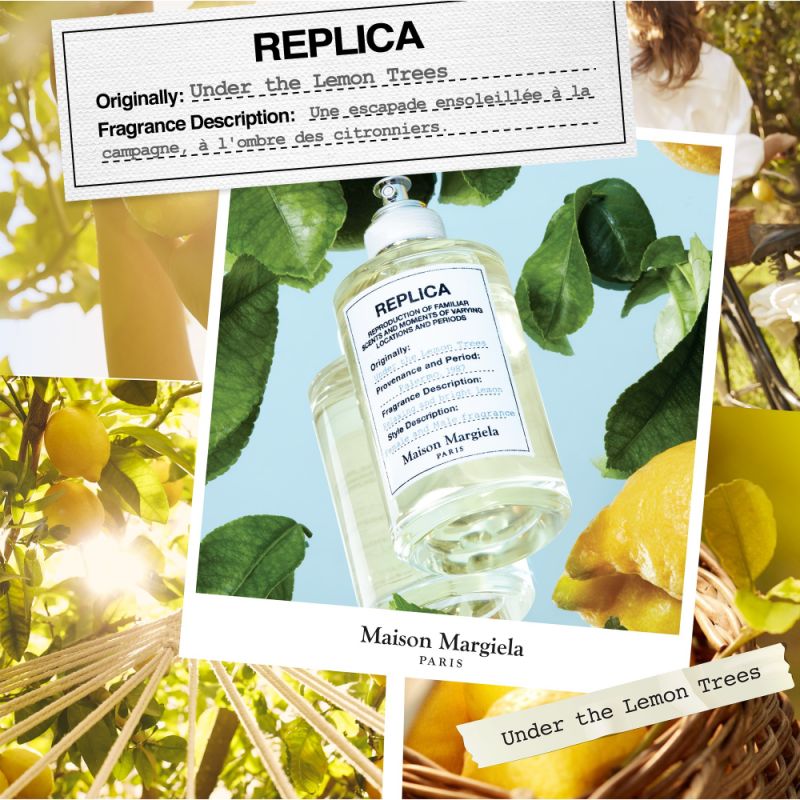 Les fragrances REPLICA s'inspirent de la collection éponyme de vêtements et accessoires créée en 1994 par Maison Margiela : des pièces chinées à travers le monde, "répliquées" à l'envie et pourvues d'étiquettes rappelant l'origine, la fonction et l'époque de la pièce originale. Cette collection est une reproduction de senteurs familières, évoquant instantanément des images et des émotions positives qui parlent à tous.